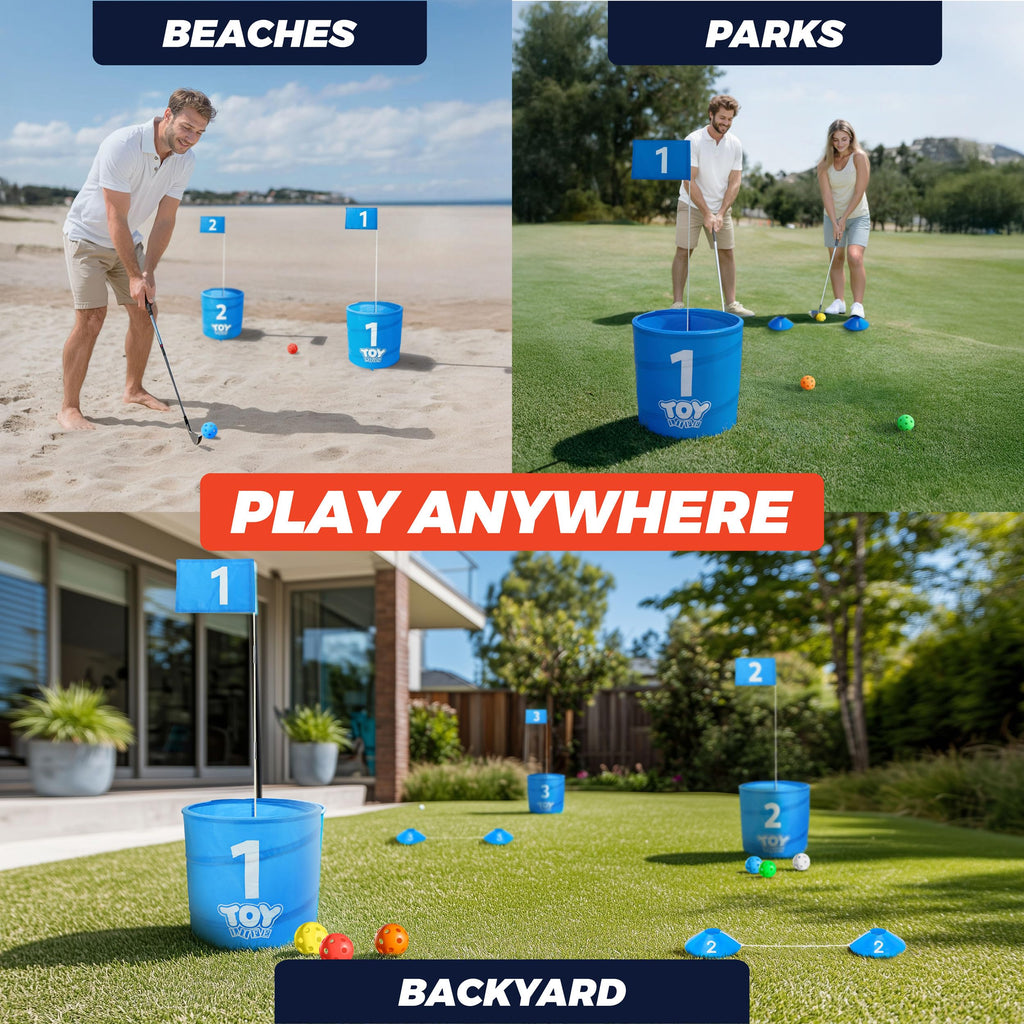 TOY Life Golf Game Set, 6 Holes Backyard Golf Bucket Game for Adults Kids, Practice Golf Course with Balls and Flag, Outdoor Indoor Golf Yard Game for Beach, Camping and Lawn